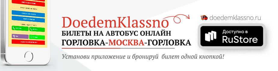 DoedemKlassno - это первый в Горловке веб-сайт и приложение для бронирования билетов по всей территории ДНР ,на автобус Москва-Горловка.